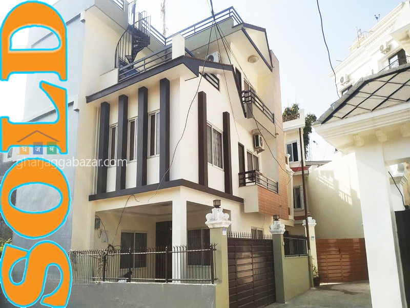 a beautifully constructed on 2068 BS, land cost only, 3 storied residential house including a basement floor, having specious rooms, built in 0-8-3-0 (279 sqrmt) sloppy land area, buit up 2862 sqft, facing west 14 feet pitched road, east 14 feet rough road, 3rd kittas inside from main road, 300 mtrs east from narayanthan highway at Ganeshmarga, Bhangal Ganeshchowk, Budhanilkantha ward no 2, Kathmandu is on sale.